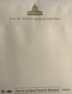 David Trone has spent record sums of money to try to buy back his seat in Maryland’s sixth district, an effort that polling indicates is failing miserably. Perhaps in recognition that he cannot win a fair fight, he has resorted to misrepresenting himself as a current member of congress and asked voters to “re-elect” him.